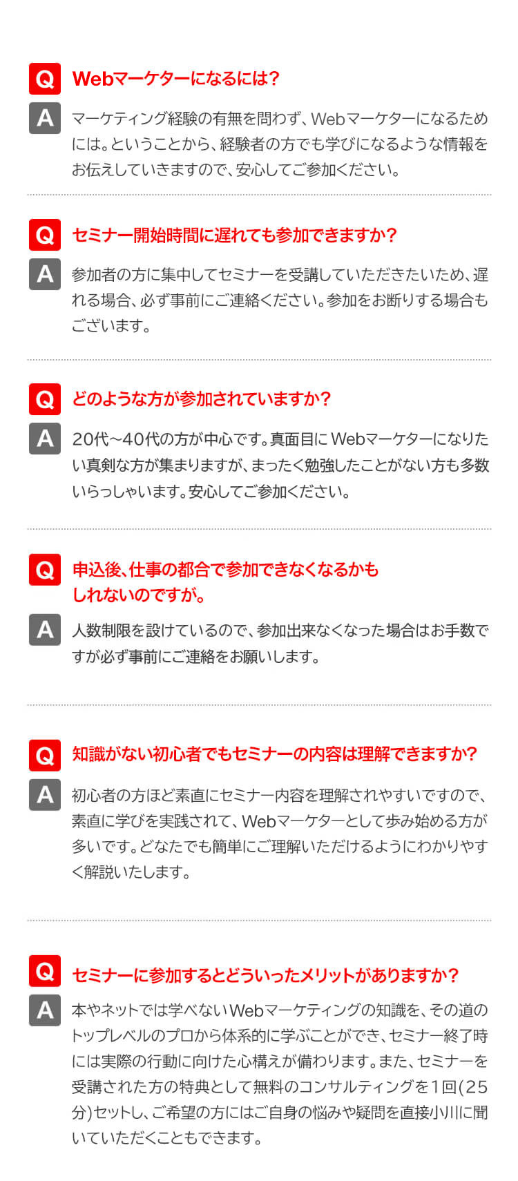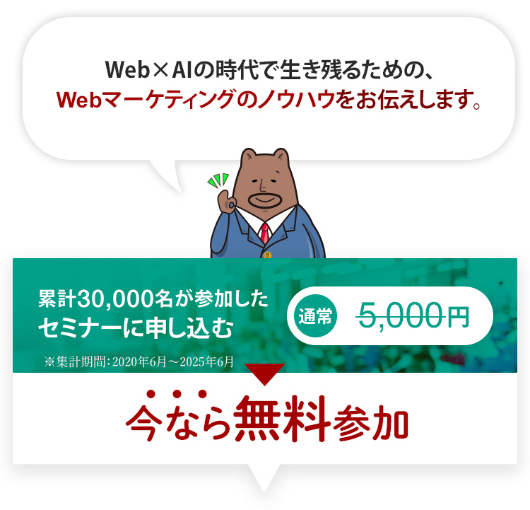 Webマーケターになることが目標であってはなりません。 Webマーケターになってからが本番です。 今回のセミナーでは、この先5年後、10年後を見据えて成長していくために必要な普遍的なポイントをお伝えしていきます。