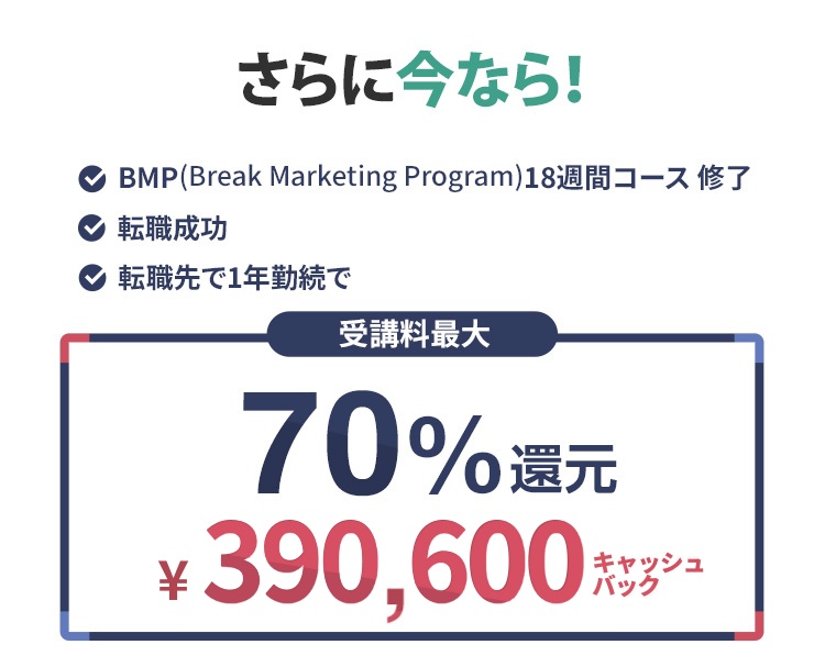 BMP(Break Marketing Program)は、経済産業省「リスキリングを通じたキャリアアップ支援事業」の対象スクールです。