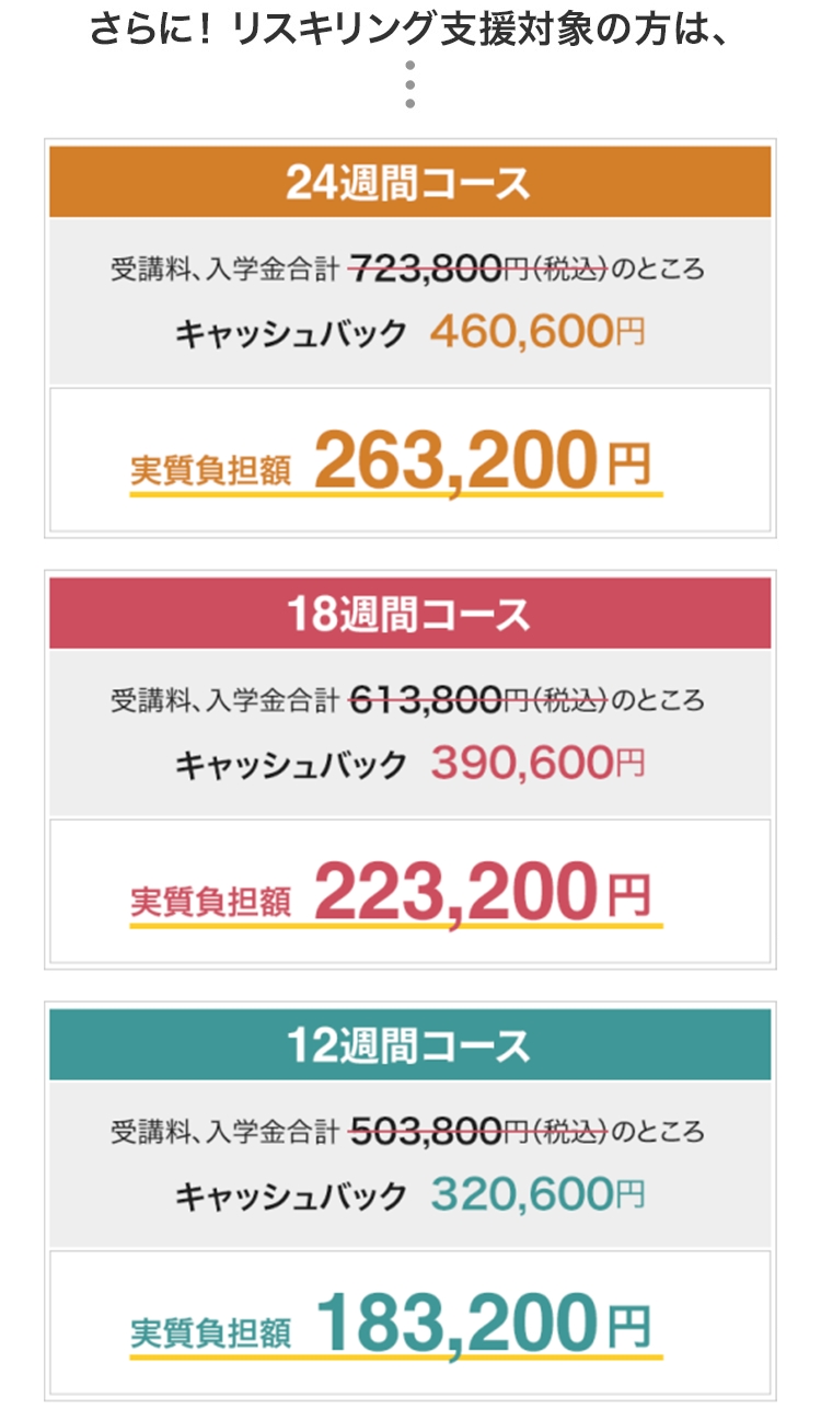 ※ リスキリングを通じたキャリアアップ支援事業の活用で受講費用の最大70%が給付されます。